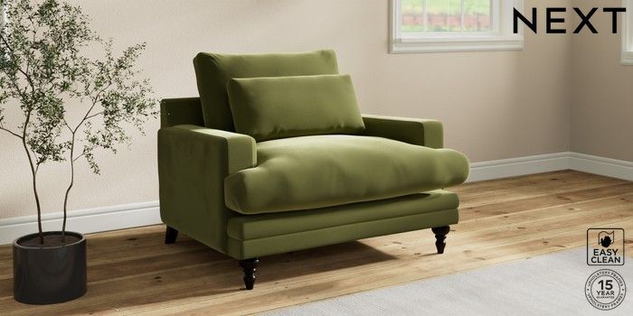 7.0.3 Buy Hutton Deep Relaxed Sit Snuggle Plush Velvet Easy Clean Mid Olive Green Country Turned - Dark from the Next UK online shop Click here to use our accessible website