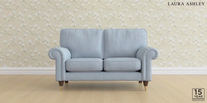 6.12.13 Buy Kingston by Laura Ashley 2 Seater Small Sofa Ailsworth Newport Blue Low Brass Castor - Chestnut from the Next UK online shop Click here to use our accessible website