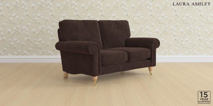 6.12.1 Buy Kingston by Laura Ashley 2 Seater Small Sofa Alwyn Velvet Chocolate Brown Low Brass Castor - Light Oak from the Next UK online shop Click here to use our accessible website