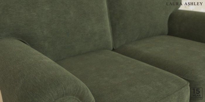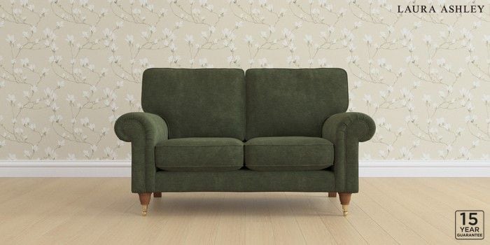 6.12.1 Buy Kingston by Laura Ashley 2 Seater Small Sofa Alwyn Velvet Ivy Green Low Brass Castor - Teak from the Next UK online shop Click here to use our accessible website