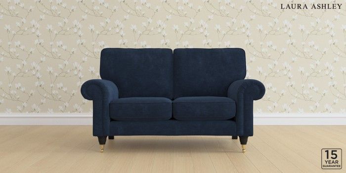6.12.13 Buy Kingston by Laura Ashley 2 Seater Small Sofa Alwyn Velvet Midnight Navy Low Brass Castor - Black from the Next UK online shop Click here to use our accessible website
