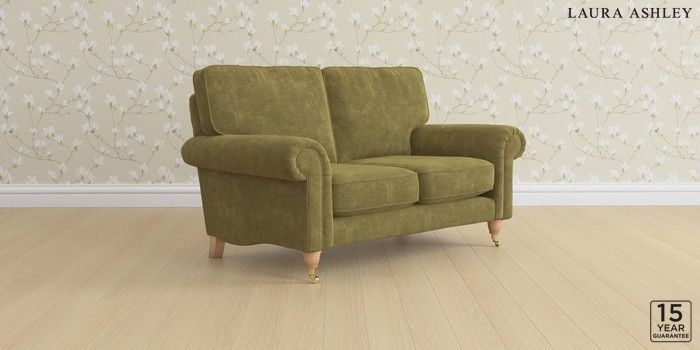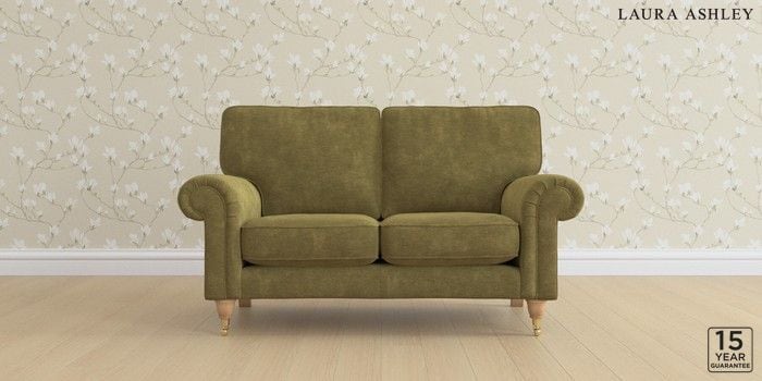 6.12.1 Buy Kingston by Laura Ashley 2 Seater Small Sofa Alwyn Velvet Olive Green Low Brass Castor - Light Oak from the Next UK online shop Click here to use our accessible website