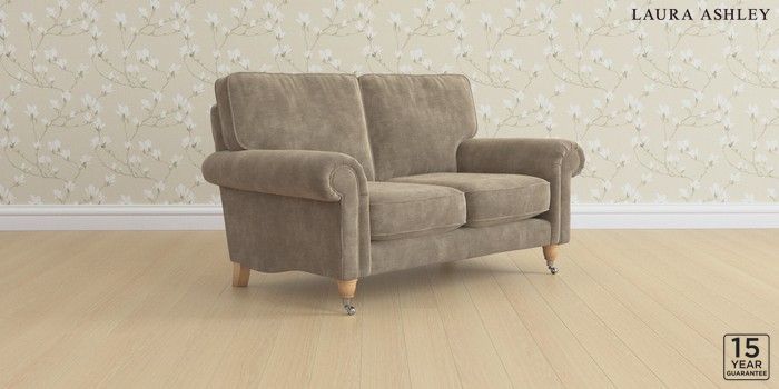 6.12.1 Buy Kingston by Laura Ashley 2 Seater Small Sofa Alwyn Velvet Truffle Natural Low Chrome Castor - Light Oak from the Next UK online shop Click here to use our accessible website