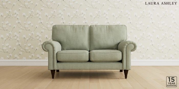 6.12.13 Buy Kingston by Laura Ashley 2 Seater Small Sofa Anneliese Sage Green Low Turned - Chestnut from the Next UK online shop Click here to use our accessible website