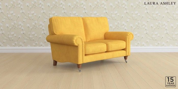 6.12.1 Buy Kingston by Laura Ashley 2 Seater Small Sofa Bainton Ochre Yellow Low Chrome Castor - Teak from the Next UK online shop Click here to use our accessible website