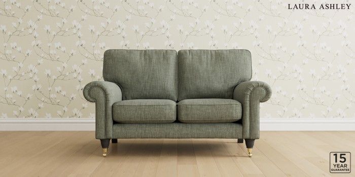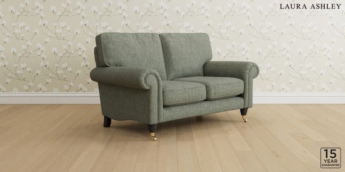 6.12.1 Buy Kingston by Laura Ashley 2 Seater Small Sofa Bainton Sage Green Low Brass Castor - Black from the Next UK online shop Click here to use our accessible website