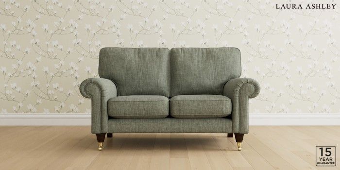 6.12.1 Buy Kingston by Laura Ashley 2 Seater Small Sofa Bainton Sage Green Low Brass Castor - Chestnut from the Next UK online shop Click here to use our accessible website