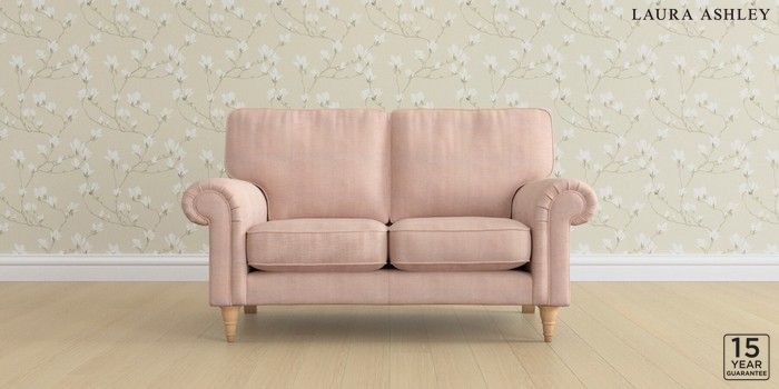 6.12.1 Buy Kingston by Laura Ashley 2 Seater Small Sofa Edwin Chenille Blush Pink Low Turned - Light Oak from the Next UK online shop Click here to use our accessible website