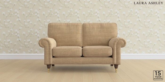 6.12.1 Buy Kingston by Laura Ashley 2 Seater Small Sofa Edwin Chenille Gold Natural Low Brass Castor - Chestnut from the Next UK online shop Click here to use our accessible website