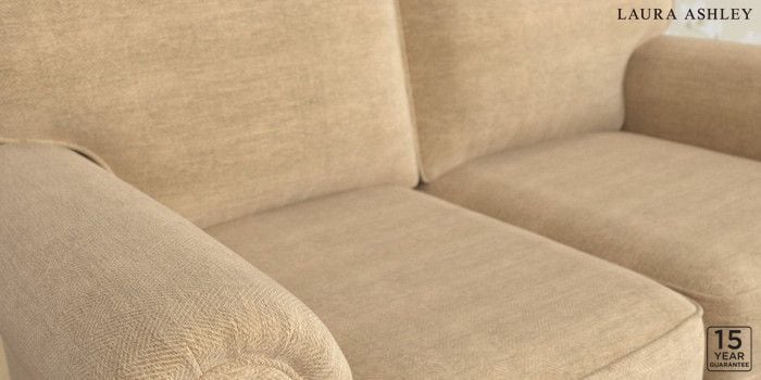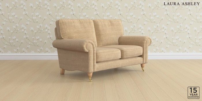 6.12.1 Buy Kingston by Laura Ashley 2 Seater Small Sofa Edwin Chenille Gold Natural Low Brass Castor - Light Oak from the Next UK online shop Click here to use our accessible website