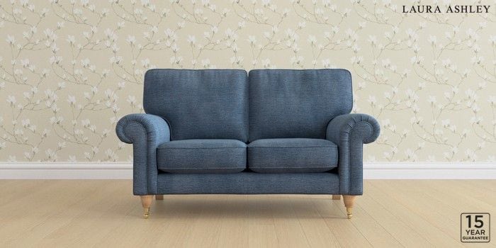 6.12.13 Buy Kingston by Laura Ashley 2 Seater Small Sofa Edwin Chenille Seaspray Blue Low Brass Castor - Light Oak from the Next UK online shop Click here to use our accessible website