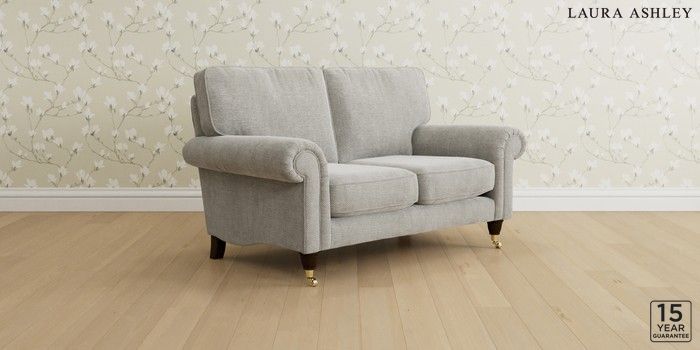 6.12.1 Buy Kingston by Laura Ashley 2 Seater Small Sofa Edwin Chenille Silver Grey Low Brass Castor - Chestnut from the Next UK online shop Click here to use our accessible website