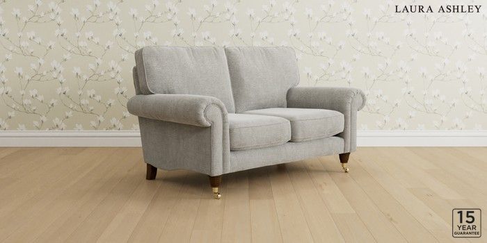6.12.1 Buy Kingston by Laura Ashley 2 Seater Small Sofa Edwin Chenille Silver Grey Low Chrome Castor - Teak from the Next UK online shop Click here to use our accessible website