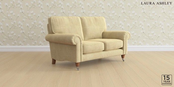 6.12.13 Buy Kingston by Laura Ashley 2 Seater Small Sofa Edwin Chenille Truffle Natural Low Chrome Castor - Teak from the Next UK online shop Click here to use our accessible website