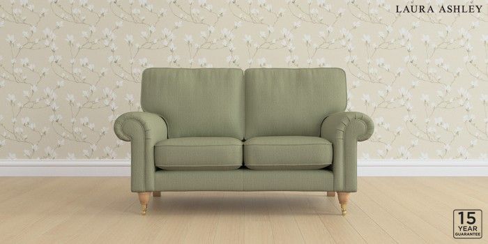 6.12.1 Buy Kingston by Laura Ashley 2 Seater Small Sofa Edwin Herringbone Hedgerow Green Low Brass Castor - Light Oak from the Next UK online shop Click here to use our accessible website