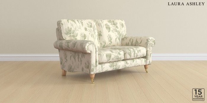 6.12.1 Buy Kingston by Laura Ashley 2 Seater Small Sofa Gosford Weave Sage Green Low Brass Castor - Light Oak from the Next UK online shop Click here to use our accessible website