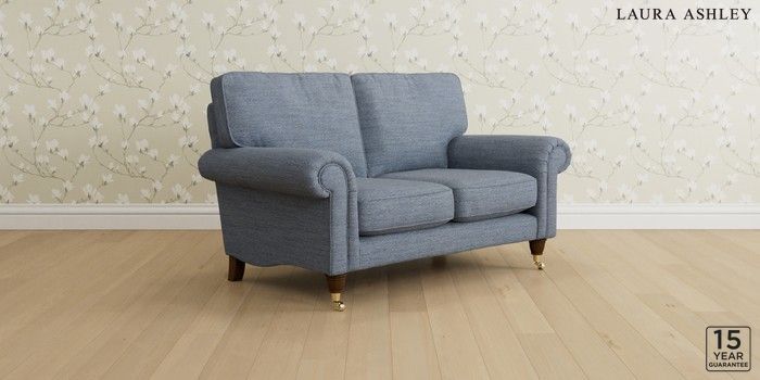 6.12.1 Buy Kingston by Laura Ashley 2 Seater Small Sofa Harley Seaspray Blue Low Brass Castor - Teak from the Next UK online shop Click here to use our accessible website