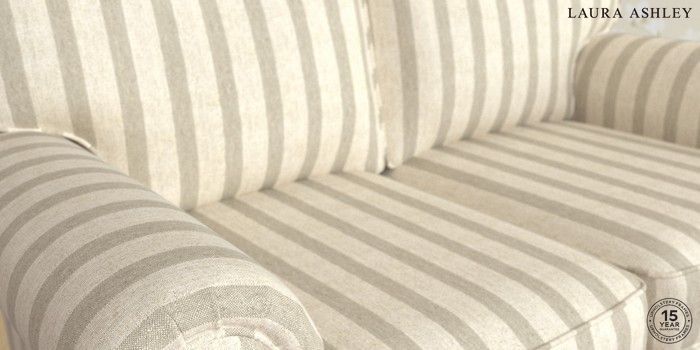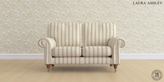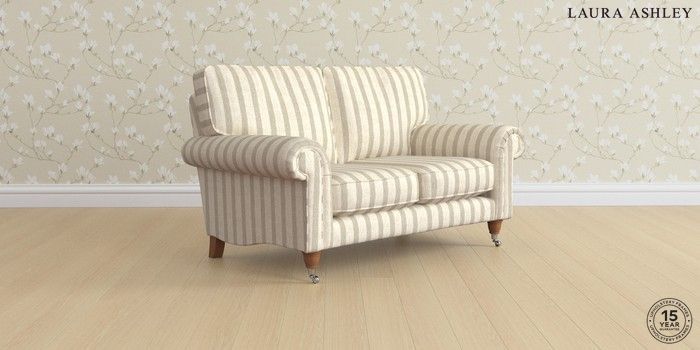6.12.1 Buy Kingston by Laura Ashley 2 Seater Small Sofa Kinsham Stripe Natural Low Chrome Castor - Teak from the Next UK online shop Click here to use our accessible website