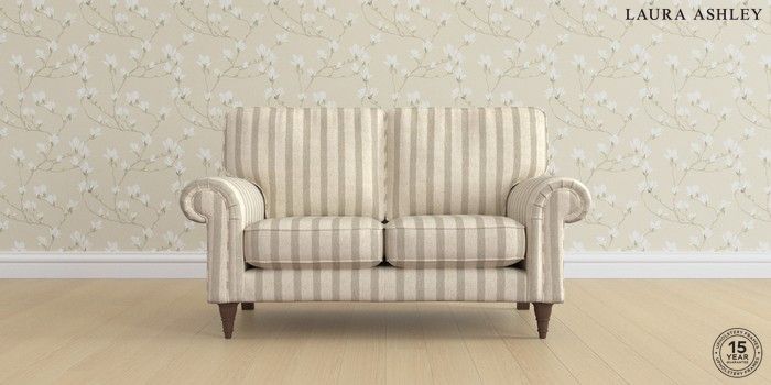 6.12.1 Buy Kingston by Laura Ashley 2 Seater Small Sofa Kinsham Stripe Natural Low Turned - Chestnut from the Next UK online shop Click here to use our accessible website