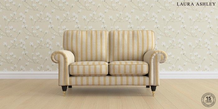 7.0.3 Buy Kingston by Laura Ashley 2 Seater Small Sofa Kinsham Stripe Ochre Yellow Low Brass Castor - Black from the Next UK online shop Click here to use our accessible website