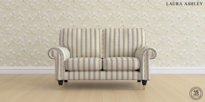6.12.1 Buy Kingston by Laura Ashley 2 Seater Small Sofa Kinsham Stripe Seaspray Blue Low Brass Castor - Black from the Next UK online shop Click here to use our accessible website