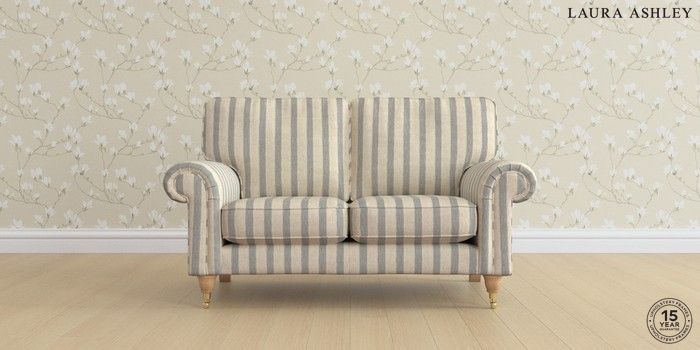 6.12.1 Buy Kingston by Laura Ashley 2 Seater Small Sofa Kinsham Stripe Seaspray Blue Low Brass Castor - Light Oak from the Next UK online shop Click here to use our accessible website