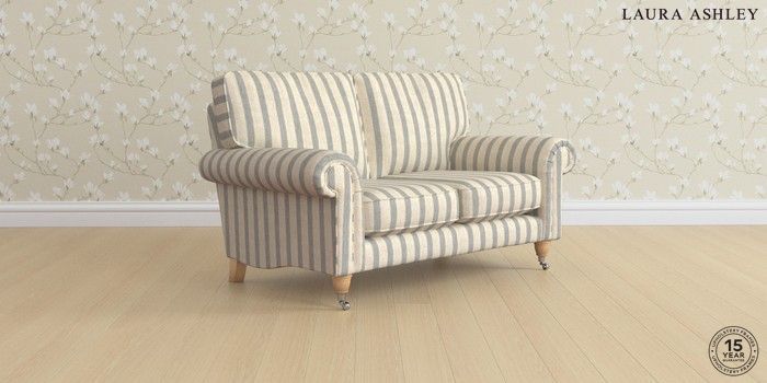 6.12.1 Buy Kingston by Laura Ashley 2 Seater Small Sofa Kinsham Stripe Seaspray Blue Low Chrome Castor - Light Oak from the Next UK online shop Click here to use our accessible website