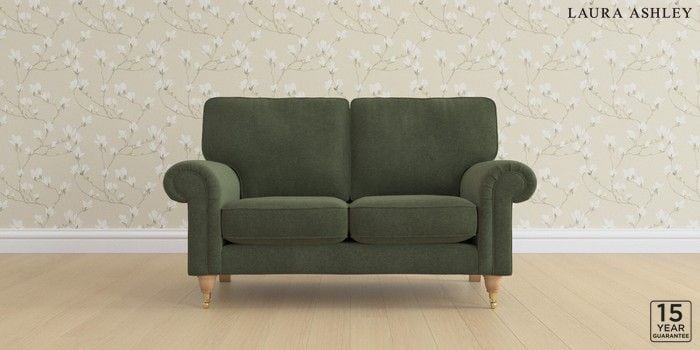 6.12.1 Buy Kingston by Laura Ashley 2 Seater Small Sofa Lundar Chenille Ivy Green Low Brass Castor - Light Oak from the Next UK online shop Click here to use our accessible website