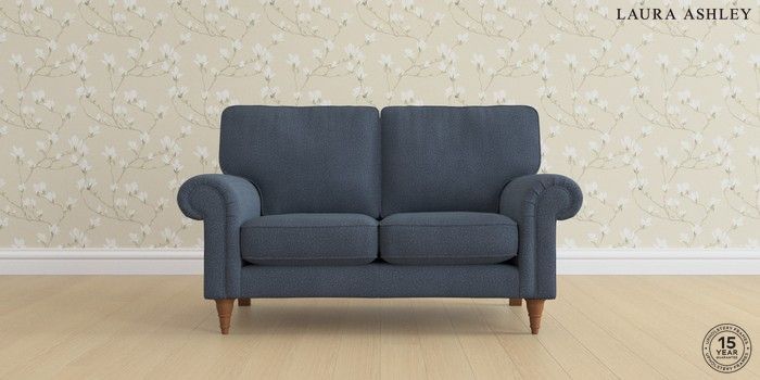 6.12.1 Buy Kingston by Laura Ashley 2 Seater Small Sofa Lundar Chenille Navy Blue Low Turned - Teak from the Next UK online shop Click here to use our accessible website