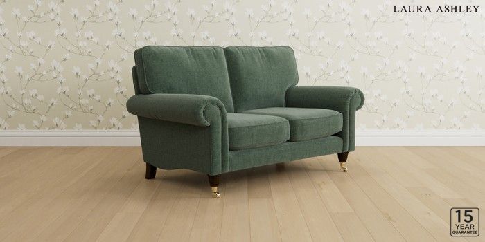 6.12.1 Buy Kingston by Laura Ashley 2 Seater Small Sofa Nantmor Fern Green Low Brass Castor - Chestnut from the Next UK online shop Click here to use our accessible website