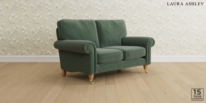 6.12.1 Buy Kingston by Laura Ashley 2 Seater Small Sofa Nantmor Fern Green Low Brass Castor - Light Oak from the Next UK online shop Click here to use our accessible website