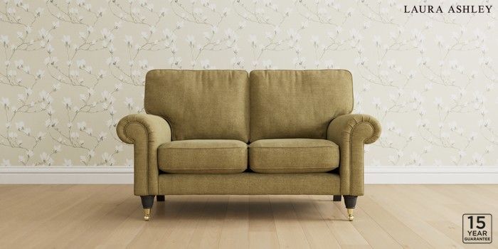 6.12.1 Buy Kingston by Laura Ashley 2 Seater Small Sofa Orla Gold Natural Low Brass Castor - Black from the Next UK online shop Click here to use our accessible website