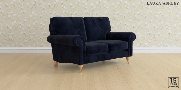 6.12.1 Buy Kingston by Laura Ashley 2 Seater Small Sofa Orla Midnight Navy Low Brass Castor - Light Oak from the Next UK online shop Click here to use our accessible website