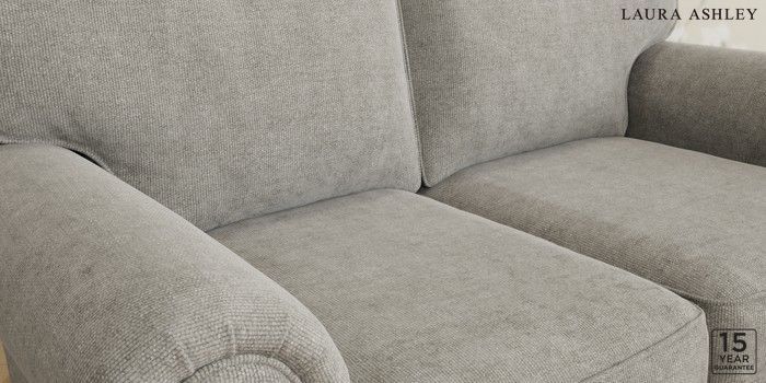 6.12.13 Buy Kingston by Laura Ashley 2 Seater Small Sofa Orla Pale Steel Grey Low Chrome Castor - Light Oak from the Next UK online shop Click here to use our accessible website