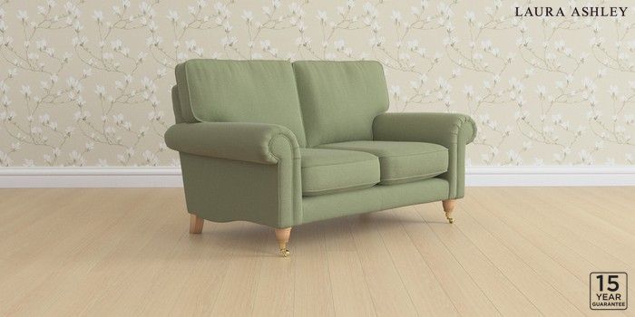 6.12.13 Buy Kingston by Laura Ashley 2 Seater Small Sofa Peyton Hedgerow Green Low Brass Castor - Light Oak from the Next UK online shop Click here to use our accessible website