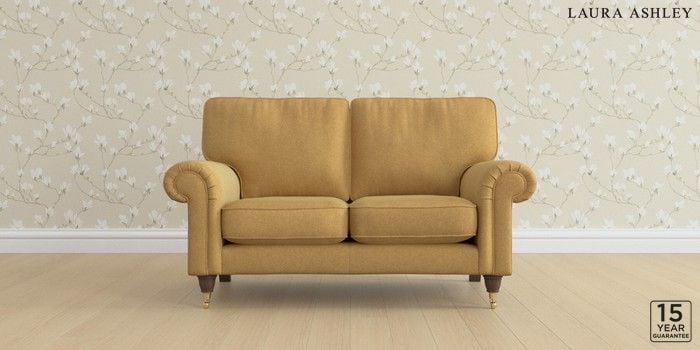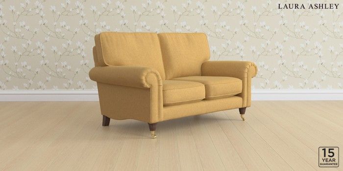 6.12.1 Buy Kingston by Laura Ashley 2 Seater Small Sofa Peyton Ochre Yellow Low Brass Castor - Chestnut from the Next UK online shop Click here to use our accessible website