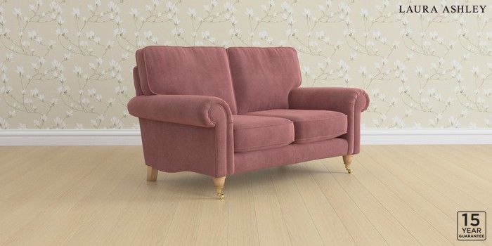 6.12.1 Buy Kingston by Laura Ashley 2 Seater Small Sofa Peyton Plum Purple Low Brass Castor - Light Oak from the Next UK online shop Click here to use our accessible website