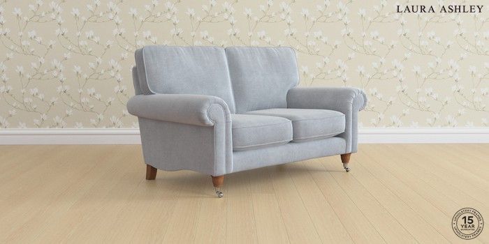 6.12.1 Buy Kingston by Laura Ashley 2 Seater Small Sofa Peyton Powder Blue Low Chrome Castor - Teak from the Next UK online shop Click here to use our accessible website