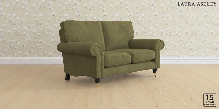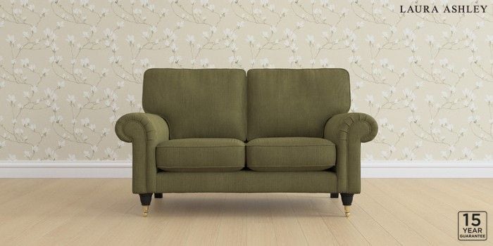 6.12.1 Buy Kingston by Laura Ashley 2 Seater Small Sofa Sinclair Cord Ivy Green Low Brass Castor - Black from the Next UK online shop Click here to use our accessible website