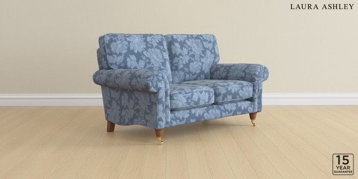 6.12.1 Buy Kingston by Laura Ashley 2 Seater Small Sofa Tamara Dusky Seaspray Blue Low Brass Castor - Teak from the Next UK online shop Click here to use our accessible website