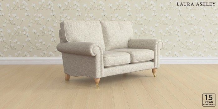 6.12.1 Buy Kingston by Laura Ashley 2 Seater Small Sofa Tichwell Stone Natural Low Brass Castor - Light Oak from the Next UK online shop Click here to use our accessible website