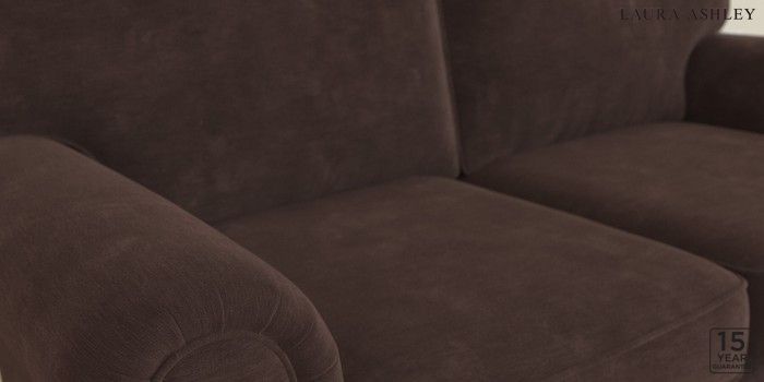 6.12.1 Buy Kingston by Laura Ashley 2 Seater Sofa Alwyn Velvet Chocolate Brown Low Brass Castor - Black from the Next UK online shop Click here to use our accessible website
