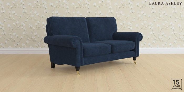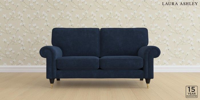 6.12.1 Buy Kingston by Laura Ashley 2 Seater Sofa Alwyn Velvet Midnight Navy Low Brass Castor - Black from the Next UK online shop Click here to use our accessible website