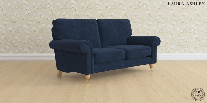 6.12.1 Buy Kingston by Laura Ashley 2 Seater Sofa Alwyn Velvet Midnight Navy Low Brass Castor - Light Oak from the Next UK online shop Click here to use our accessible website
