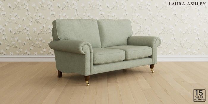 6.12.1 Buy Kingston by Laura Ashley 2 Seater Sofa Anneliese Sage Green Low Brass Castor - Teak from the Next UK online shop Click here to use our accessible website