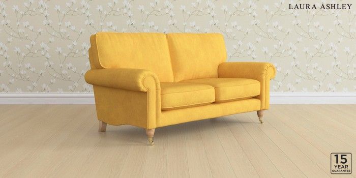 6.12.13 Buy Kingston by Laura Ashley 2 Seater Sofa Bainton Ochre Yellow Low Brass Castor - Light Oak from the Next UK online shop Click here to use our accessible website
