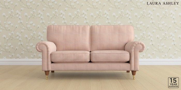 6.12.1 Buy Kingston by Laura Ashley 2 Seater Sofa Edwin Chenille Blush Pink Low Brass Castor - Teak from the Next UK online shop Click here to use our accessible website