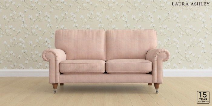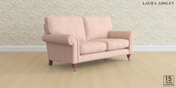 6.12.1 Buy Kingston by Laura Ashley 2 Seater Sofa Edwin Chenille Blush Pink Low Chrome Castor - Teak from the Next UK online shop Click here to use our accessible website