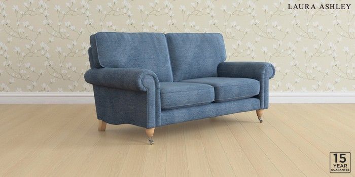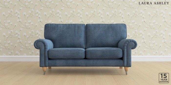 6.12.1 Buy Kingston by Laura Ashley 2 Seater Sofa Edwin Chenille Seaspray Blue Low Chrome Castor - Light Oak from the Next UK online shop Click here to use our accessible website