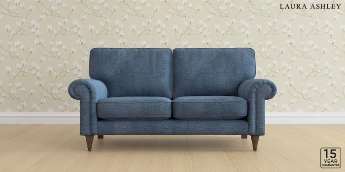 6.12.1 Buy Kingston by Laura Ashley 2 Seater Sofa Edwin Chenille Seaspray Blue Low Turned - Chestnut from the Next UK online shop Click here to use our accessible website